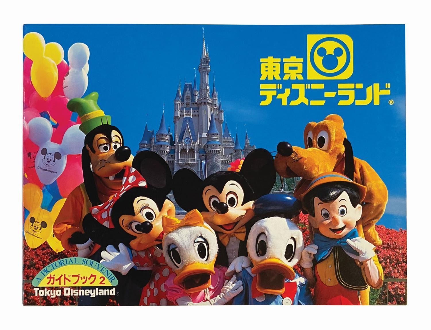 (Tokyo Disneyland, 1986) An early pictorial souvenir guidebook from Tokyo Disneyland. The 51-page book features color photos of the various lands and attractions of the park with descriptions written in both English and Japanese. Measuring 8.75"x11.75", the book is in very good condition with some wear to the cover around the edges.