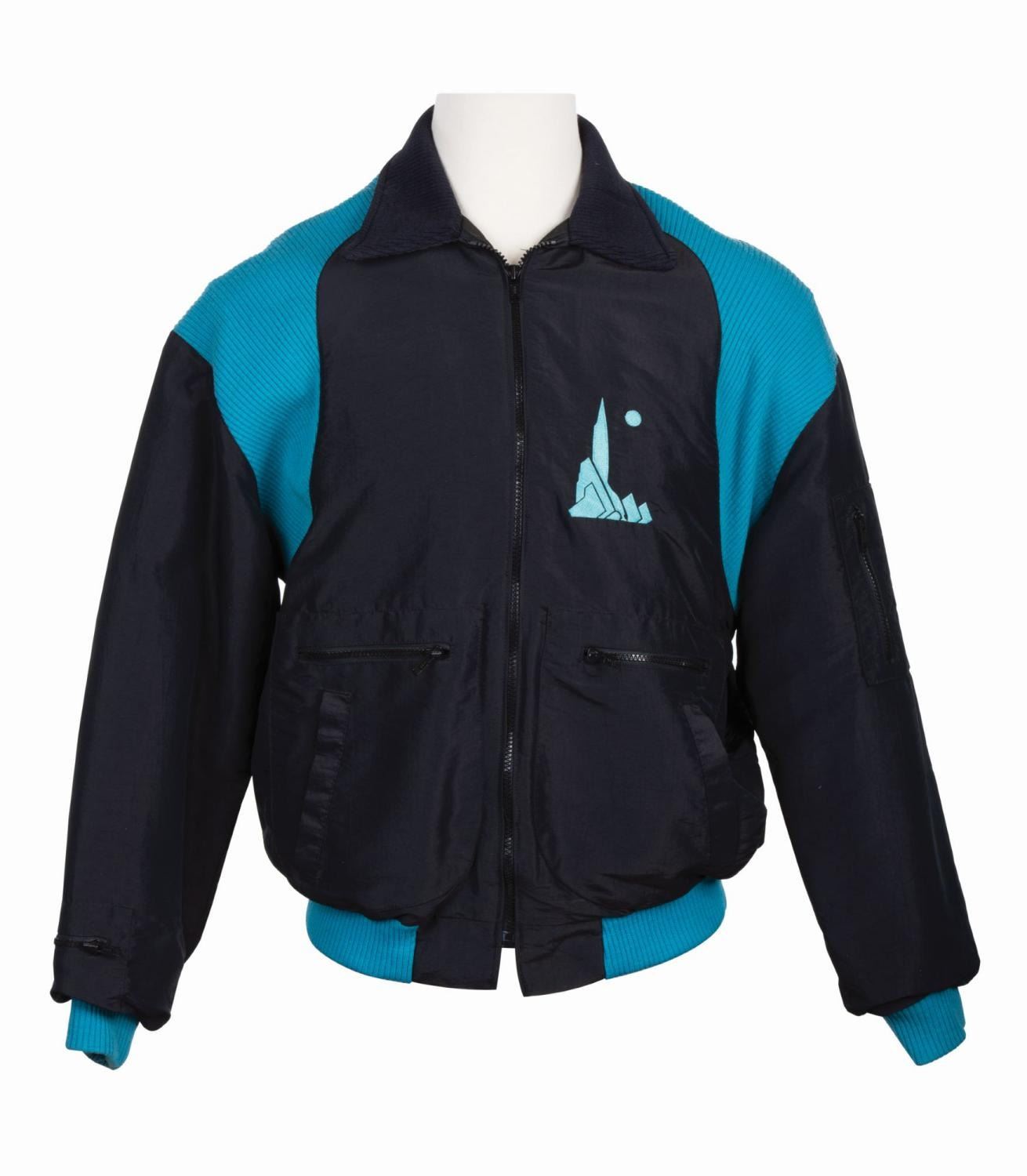 (Disneyland, 1993) A project jacket for the never-realized Tomorrowland 2055 land refurbishment project. This project was meant to revitalize Tomorrowland to give it an extraterrestrial focus, but was cancelled, due in part to the financial loss of Disneyland Paris. The blue and black jacket features the Tomorrowland 2055 logo embroidered on the chest and back. The jacket is a size L, and is in very good condition with minor surface wear.