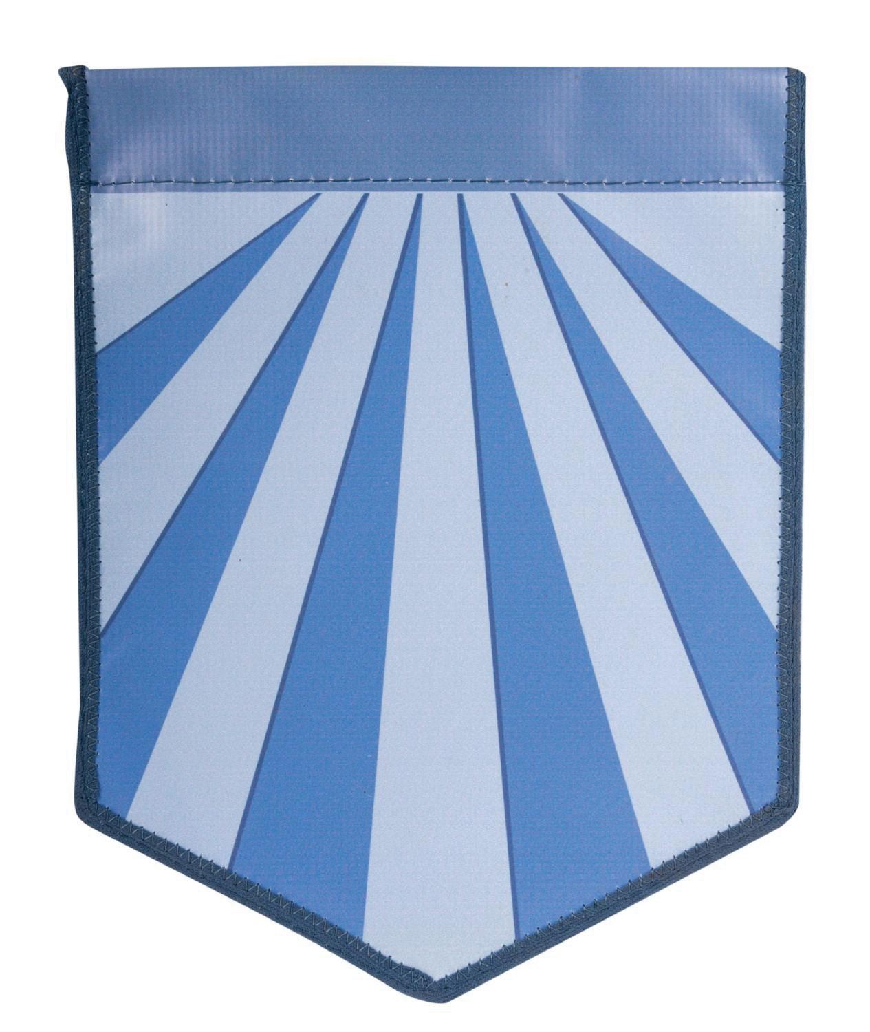 (Disneyland, 2010s) A flag utilized on the crowd control ropes in Tomorrowland. The flag features screen-printed imagery reflecting "a world on the move," and a Velcro flap on the reverse for easy mounting. Measuring 8.75"x10.5", the vinyl, cotton, and Velcro flag is in good overall condition exhibiting scuffs, scratches, and wear to the edges and surface from Park use.