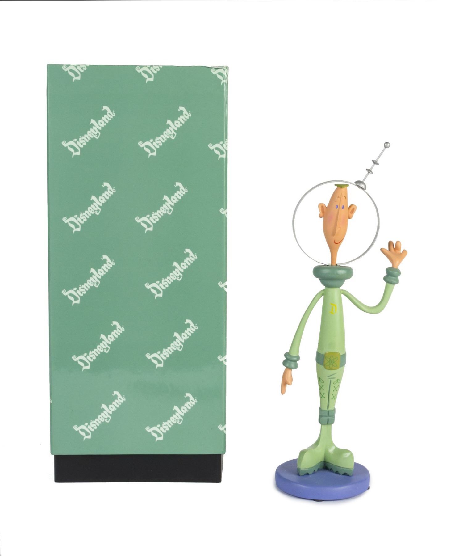 (Disneyland, 2010) A limited edition figure created by Kevin Kidney and Jody Daily in a set of figures that celebrate the cast members of early Disneyland. This "Tomorrowland Spaceman" is inspired by the early space suit clad cast members of Tomorrowland, and was limited to only 500 figures. Measuring 13" tall, the figure is in very good condition and comes with its original box and packaging.