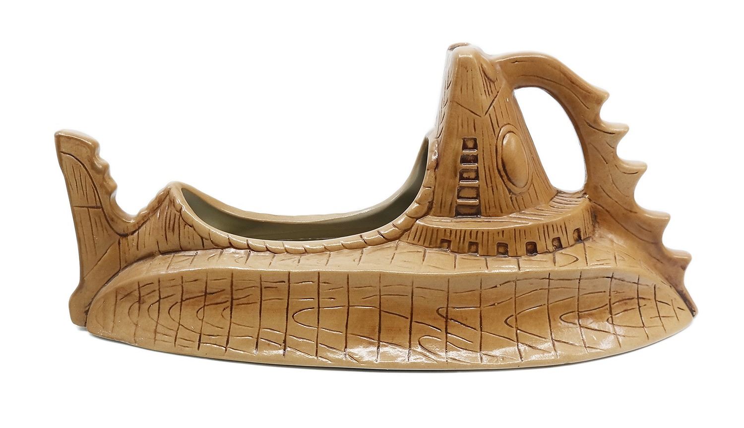 (Walt Disney World, 2010s) A rare Nautilus themed ceramic mug from Trader Sam's Grog Grotto at the Polynesian Village Resort. This second edition mug was only offered at the Grog Grotto, and measures an impressive 14" long, 6" wide, and 5.5" tall. The condition is very good and the mug comes in its original box and packaging.