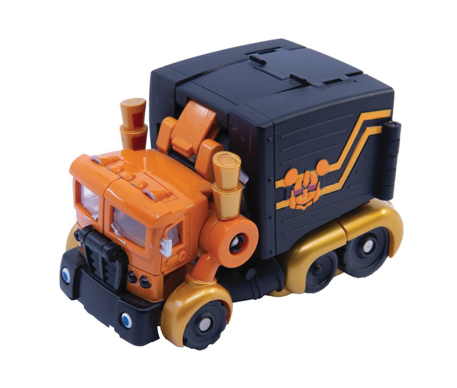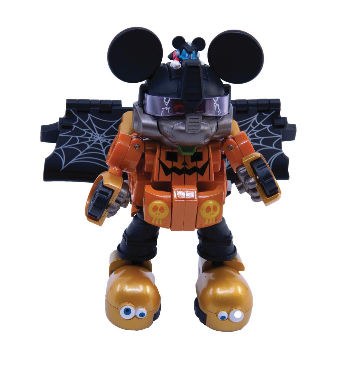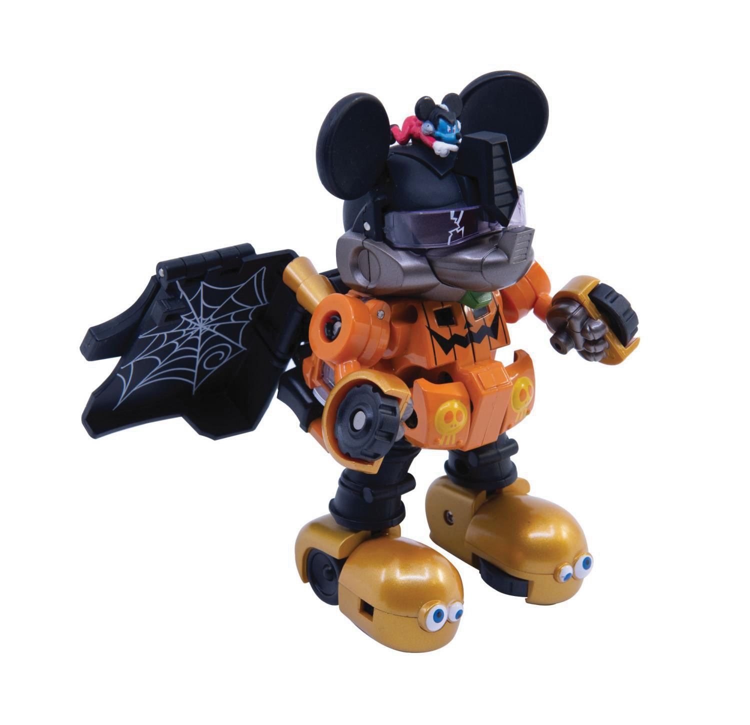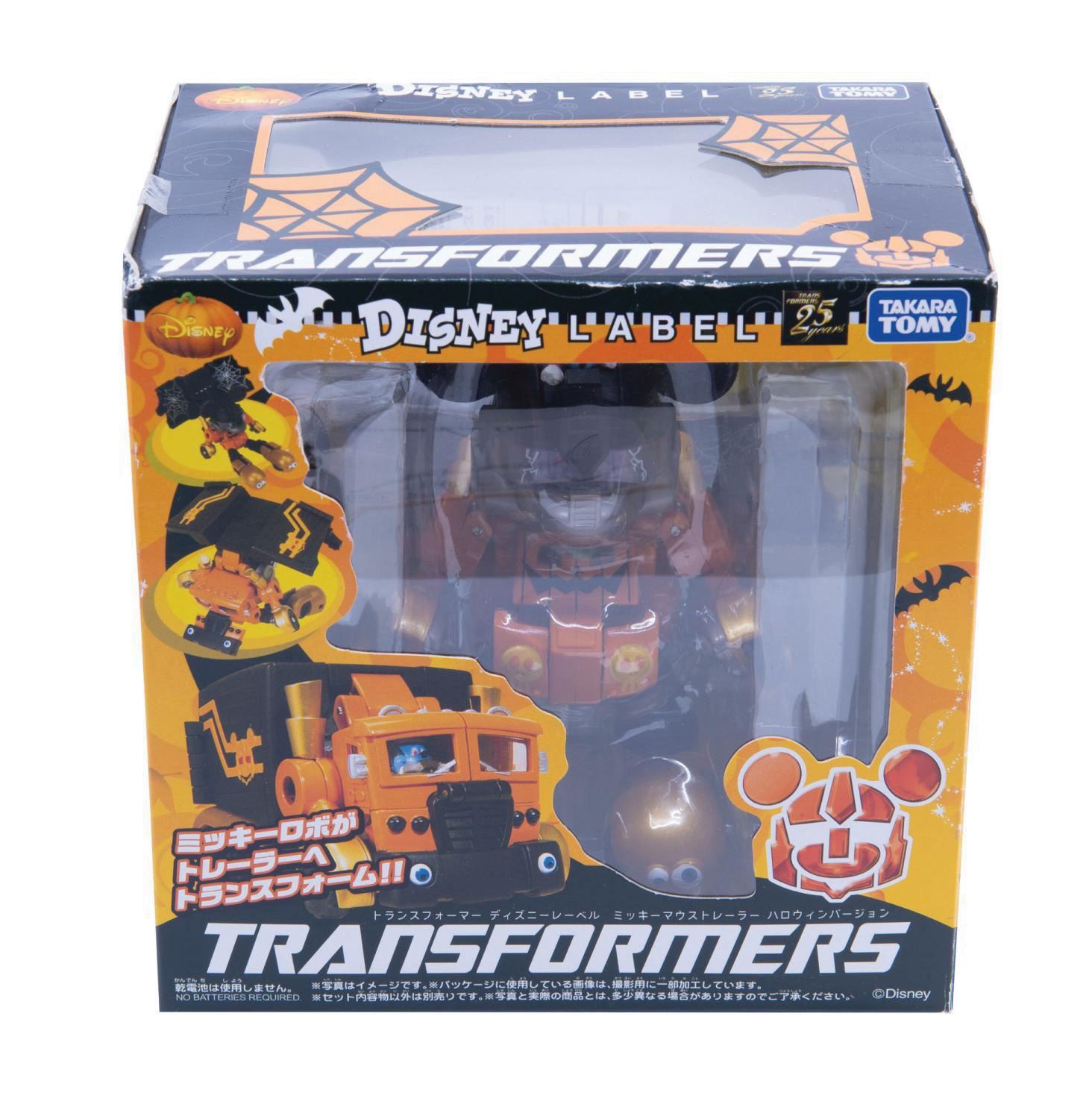 (TakaraTomy, 2009) A rare Mickey Mouse figure that transforms into Optimus Prime. One of five Mickey Transformers figures from TakaraTomy's Disney Label, it was created to celebrate the 25th Anniversary of the animated series. This Halloween variant was exclusive to 7-Eleven stores in Japan and features seasonal colors and festive details. The original box measures 6"x6"x4.5" and has minor edge wear and creasing on the top and rear side and includes sealed Japanese instructions. The figure itself is in very fine condition.