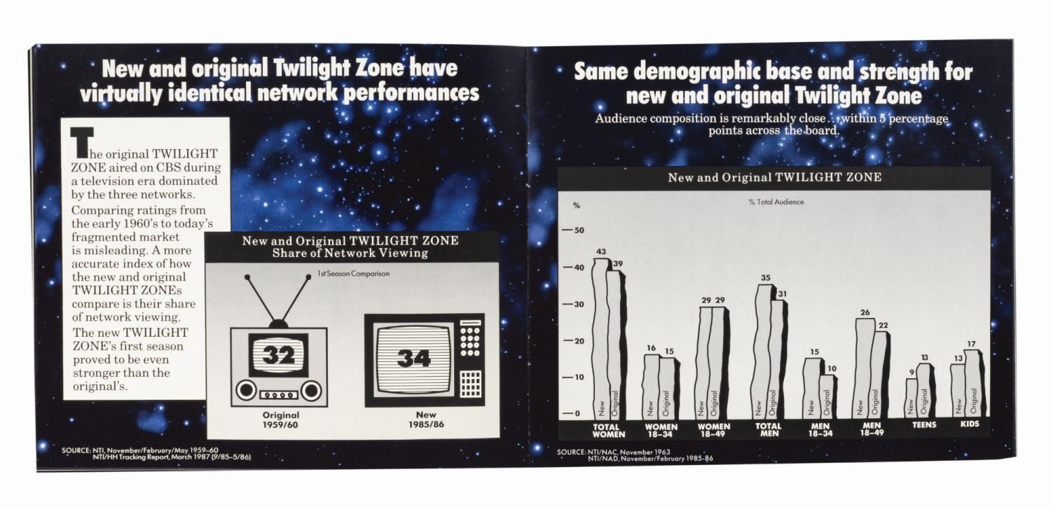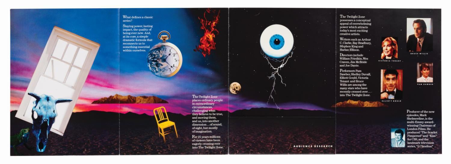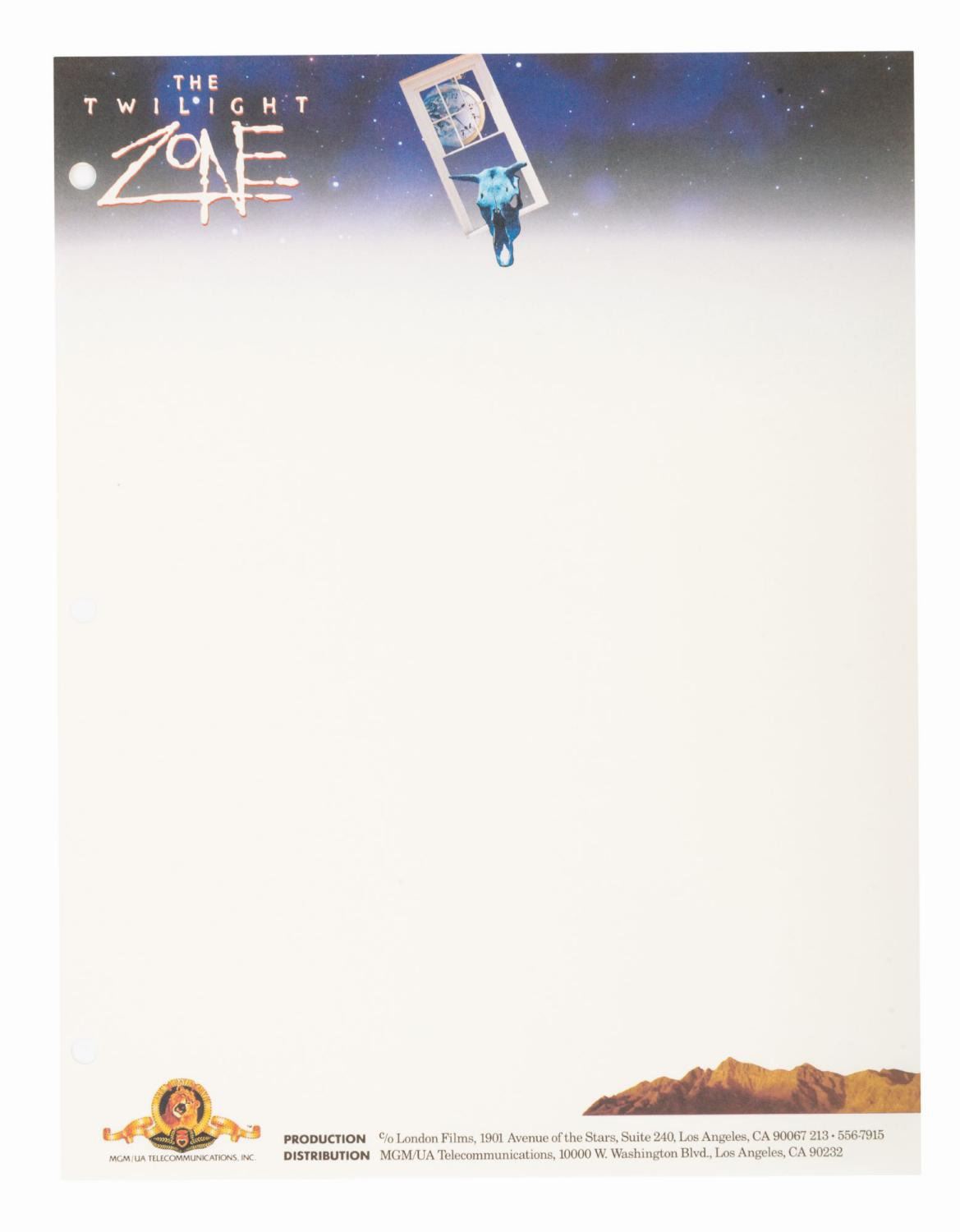 (MGM/UA, c.1980s) A Press Kit and set of (25) pages of stationery featuring the logo and imagery from the 1980s revival of CBS' The Twilight Zone. Measuring 12"x9" and 8.5"x11", the Press Kit and stationery are in very good condition with very minor creases and slight wear throughout.
