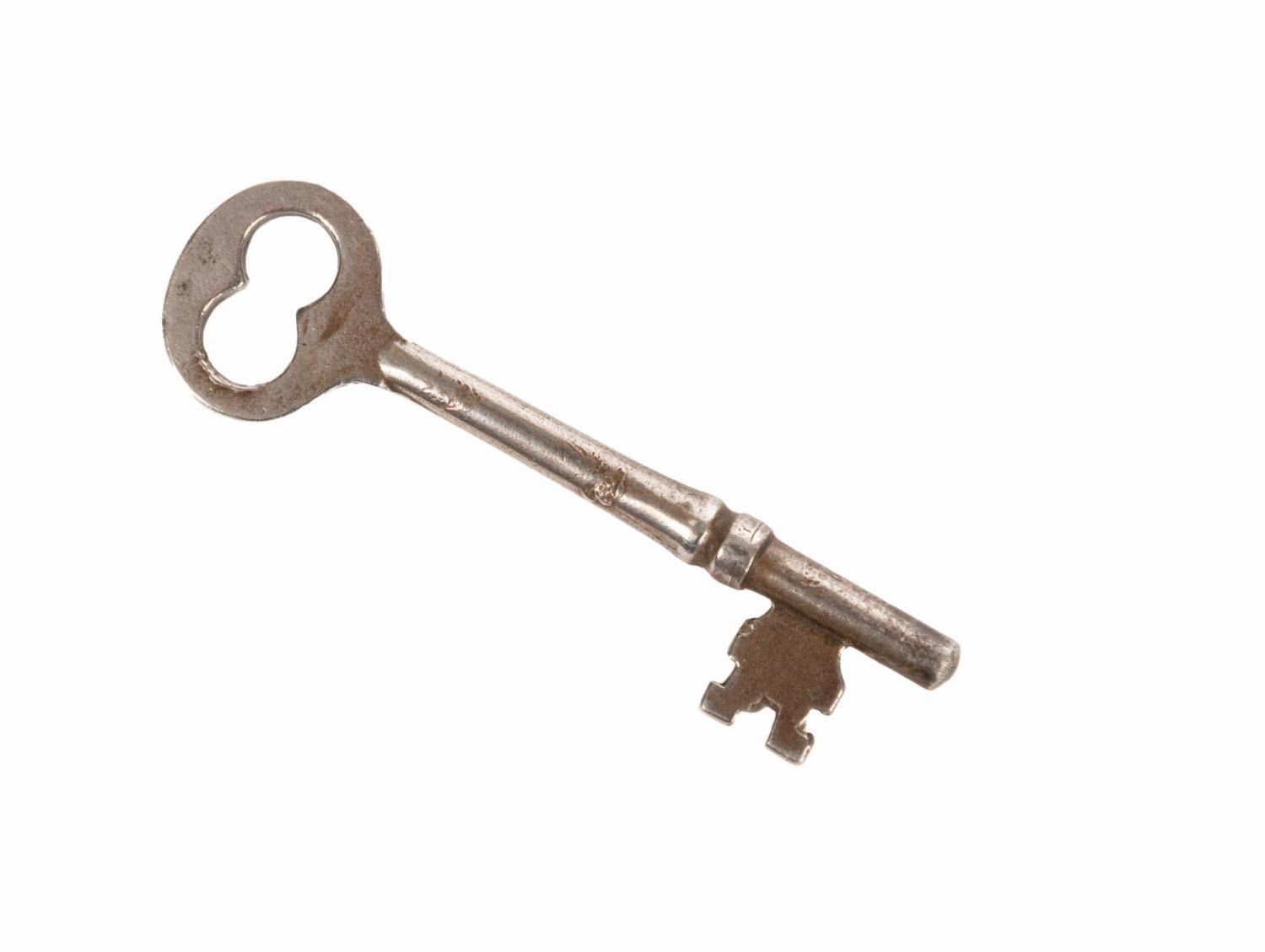 (California Adventure, c.2000s) A prop key from the Twilight Zone Tower of Terror Boiler Room at Disney's California Adventure. The faux-antique metal key features an elaborately cut bit and is stamped on the bow "Corbin YY10." Measuring approximately 2.75" long, the piece is in very good condition with minor intentional distress.