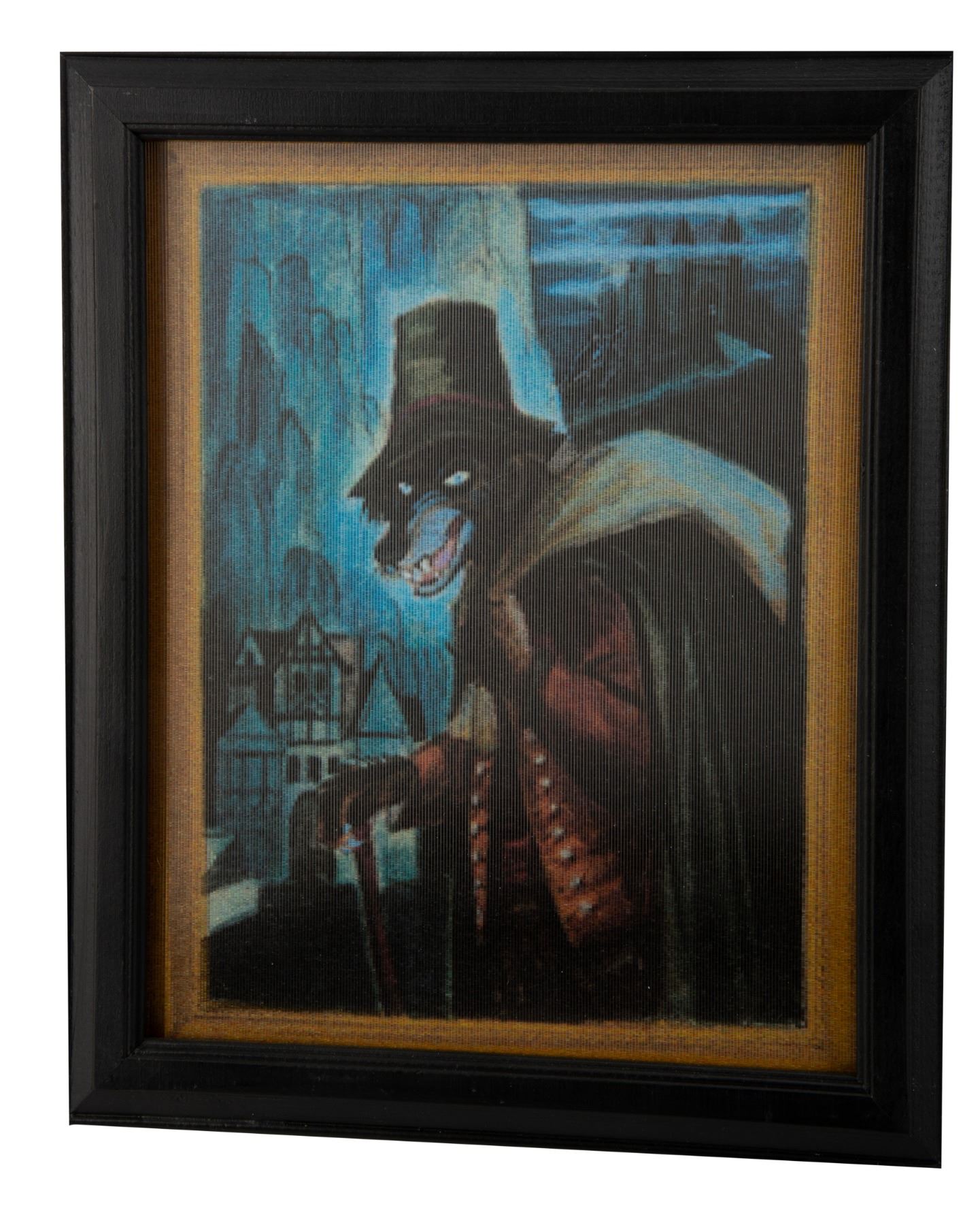(Disney) A Pair of Haunted Mansion Souvenir Lenticular Changing Portraits. This lot includes Master Gracey and The Arsonist, paintings featured in The Magic Kingdom Haunted Mansion. Measuring 9.5" x 11.5", each framed piece is in fine condition.