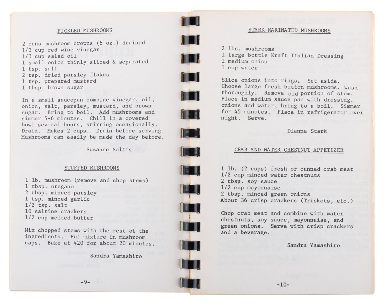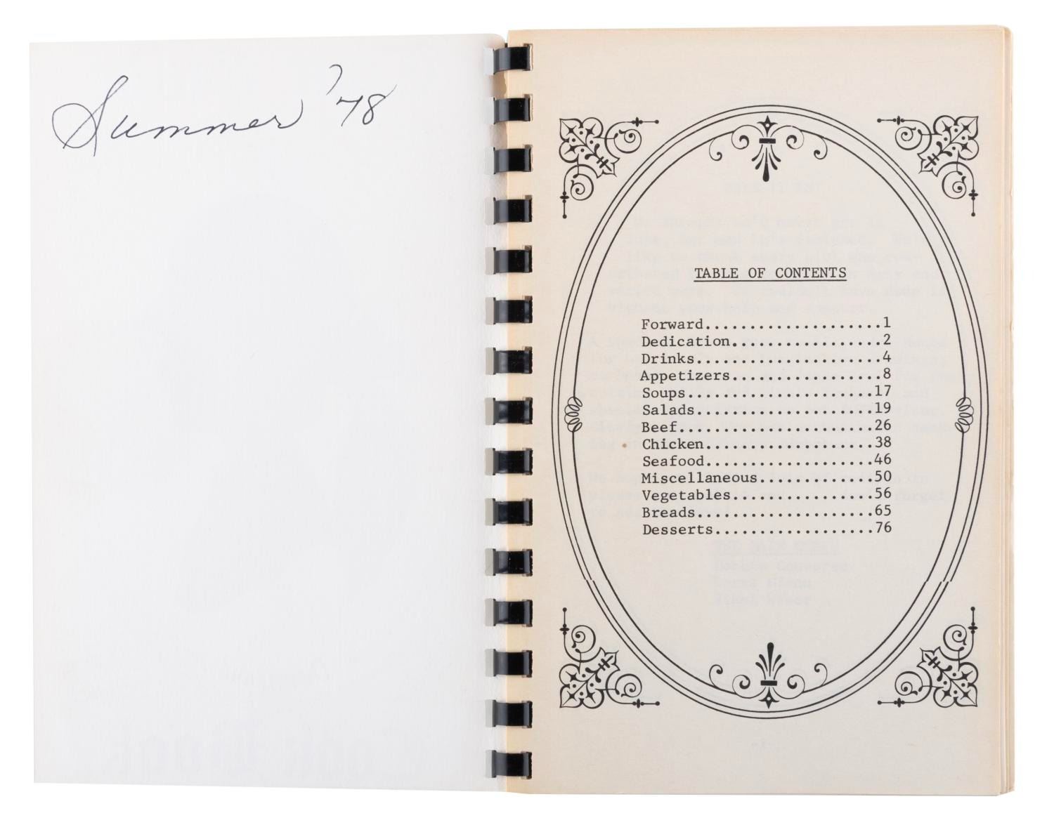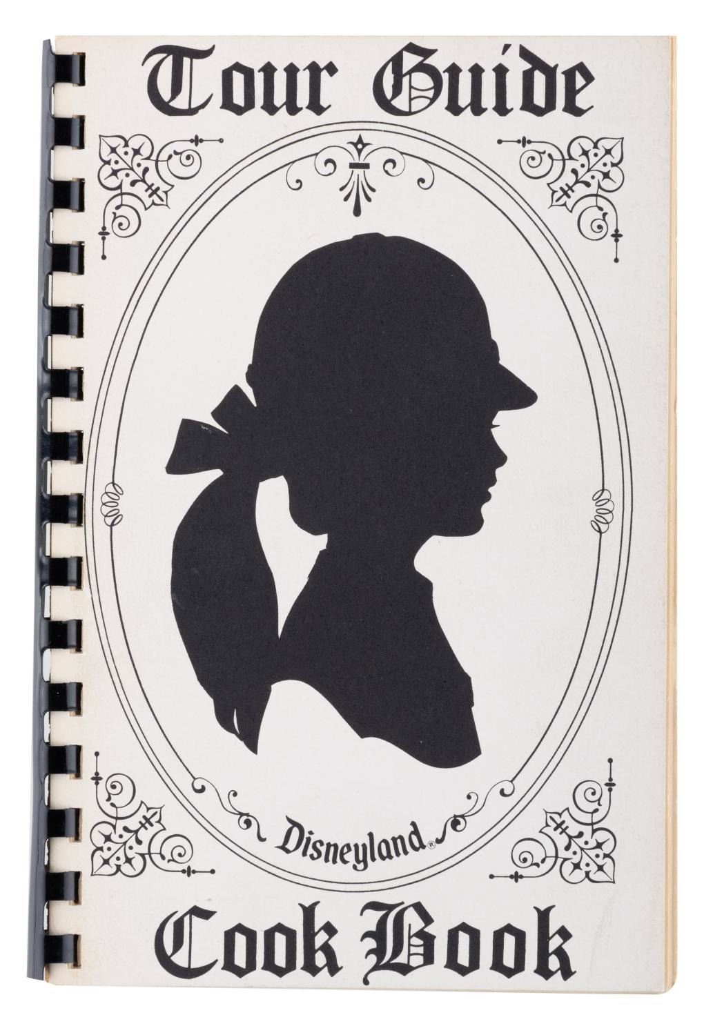 (Disneyland, 1970s-80s) A copy of the Disneyland Tour Guide Cook Book Volume 1 featuring 72 pages of recipes contributed by Disneyland Tour Guides. Measuring 5.75" x 8.5', the book is in very good condition with light stains on the back and discoloration from age.