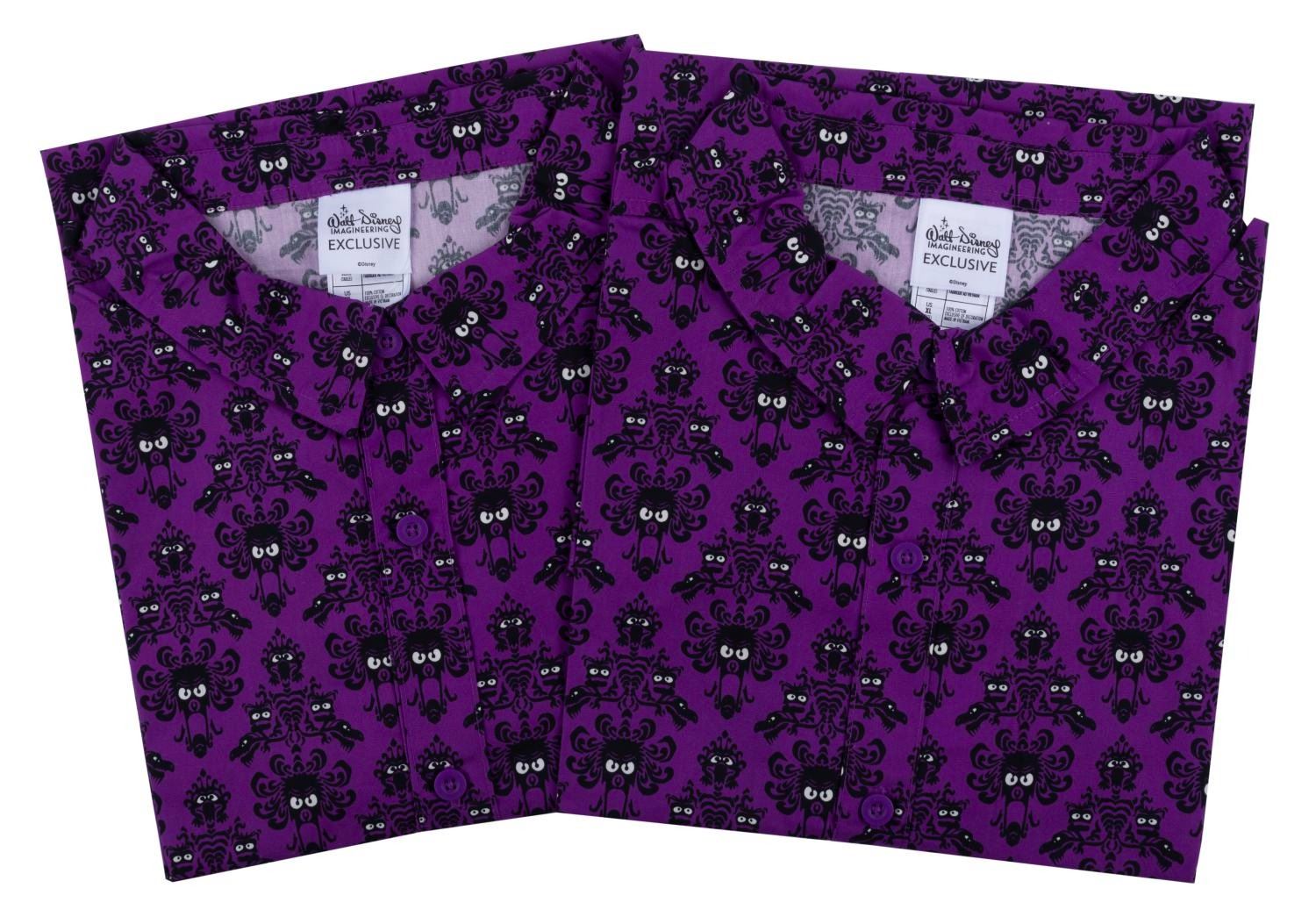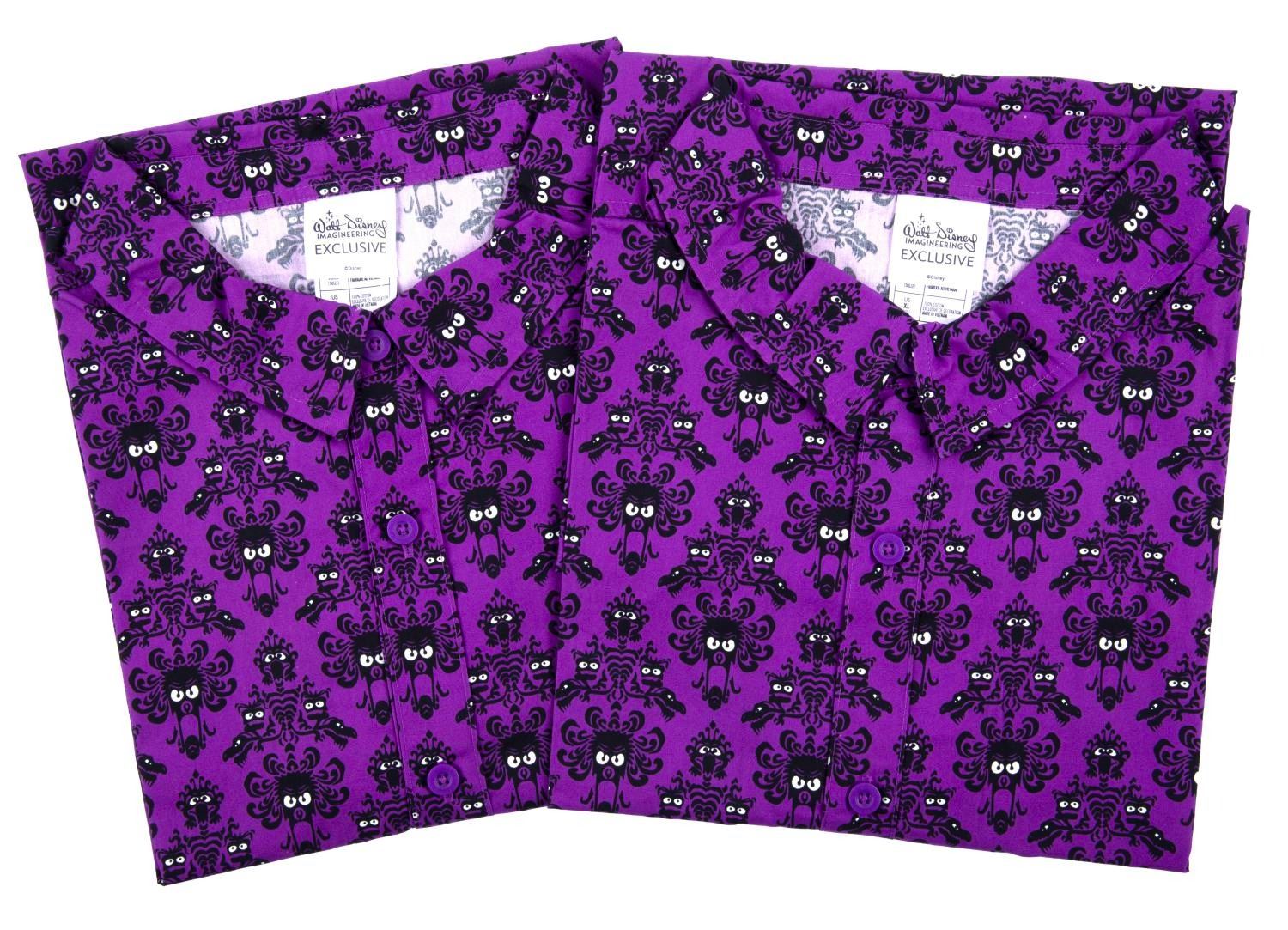 (Walt Disney Imagineering) A pair of WDI exclusive Muppets Haunted Mansion wallpaper shirts featuring Gonzo, Pepe the Prawn, Uncle Deadly and more. Measuring a size XL, the shirts are in fine condition in their original packaging and with their tags attached.