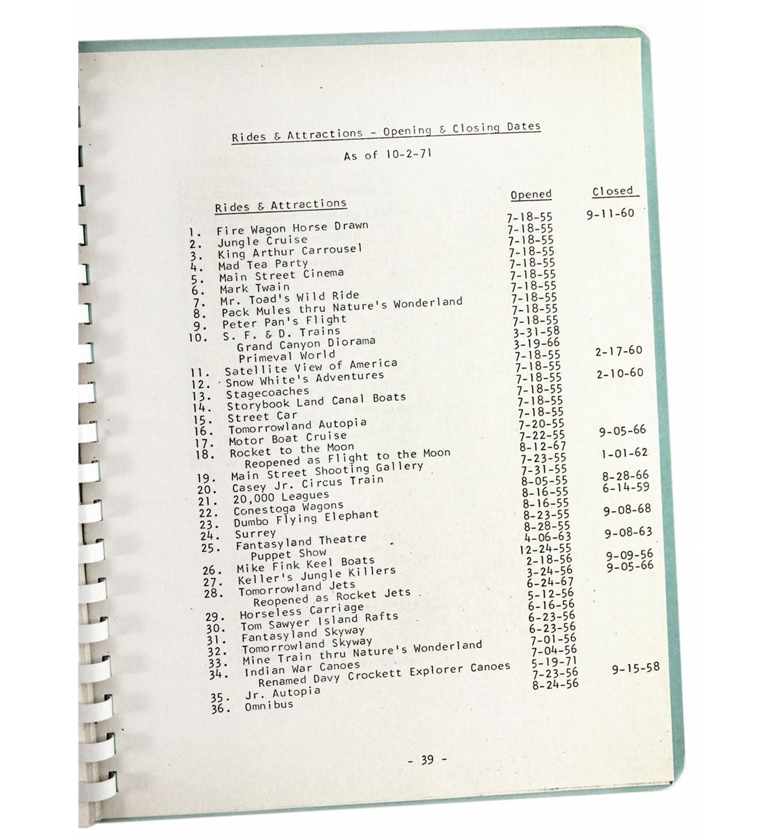 (WED, 1971) In-house file folder from the office of Mel Melton containing statistics on admissions and ticket sales and comparisons to previous years. Measuring 11 x 8.5 in. and in very good condition.