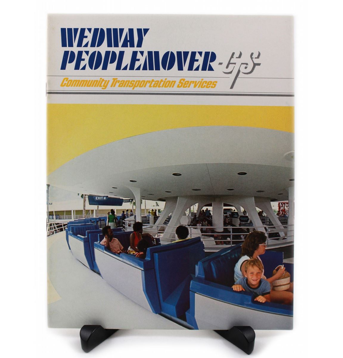 (Walt Disney World, 1975)Here is a nice informational sales booklet created by WED for potential sales of the WEDWAY Peoplemover system for commercial use outside of the Disney company. A major feature of Walt’s plan with EPCOT was to initiate research & development of various transport, communication and city engineering systems to benefit his prototype community and in turn provide a revenue stream with the licensing of said systems to industry. Community Transportation Services (CTS) was part of the semi-realized plan. The cover features a nice color photo of the newly installed WEDWAY Peoplemover station at the Magic Kingdom in Walt Disney World. Booklet measures 11 x 8.5 in. and is in fine condition.