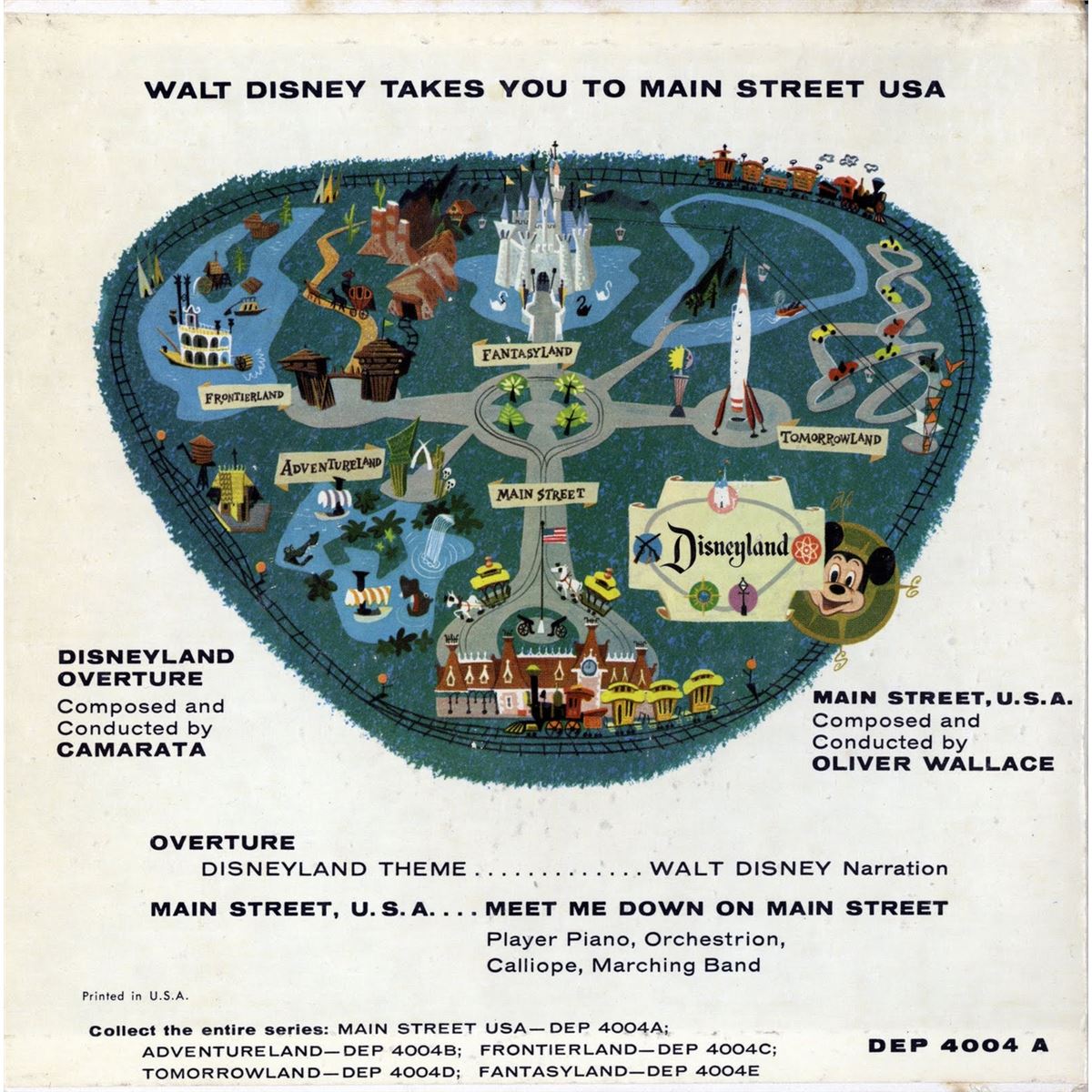 (Disneyland, 1956) Vintage set of (5) LP records from the collection of Disneyland Records President and Disney Composer, Tutti Camaratta. Each record features Walt Disney giving a musical tour of a specific land in the park. All 12 in. LP and sleeves are in very good condition with slight wear.