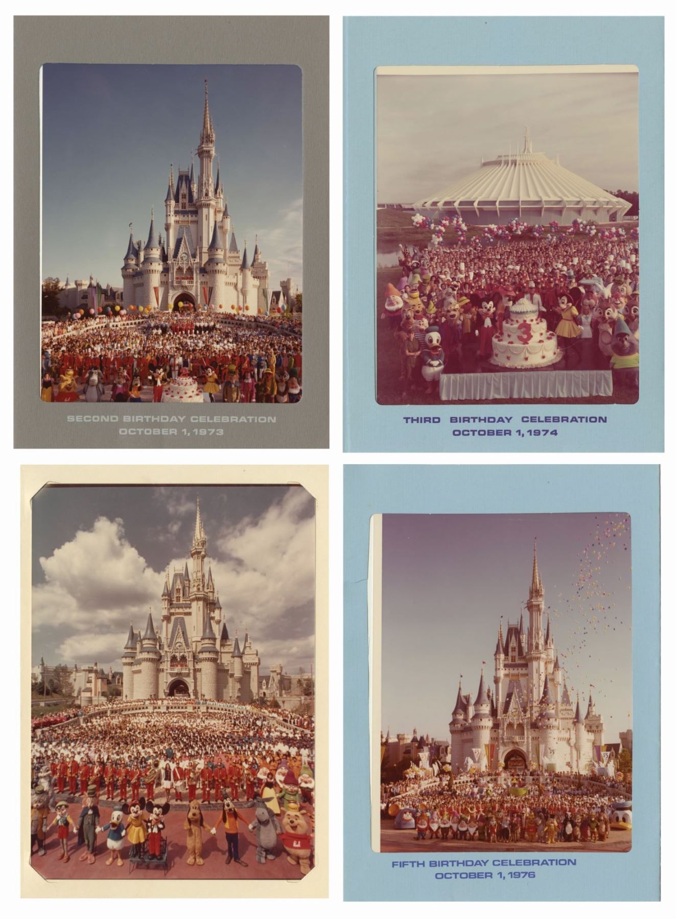 (Walt Disney World, 1971-76) A very rare set of (4) cast member photos given in appreciation to cast members as part of significant anniversaries for Walt Disney World. The set includes photos from: "Preview Month" in 1971 with a letter from Roy O. Disney, the 2nd anniversary in 1973 with a letter from Bob Allen, the 3rd anniversary with a letter from Bob Allen, and the 5th anniversary. The photos measure 7.75"x5" within their original paper frames. The set is in very good condition overall with minor edge-wear from use.