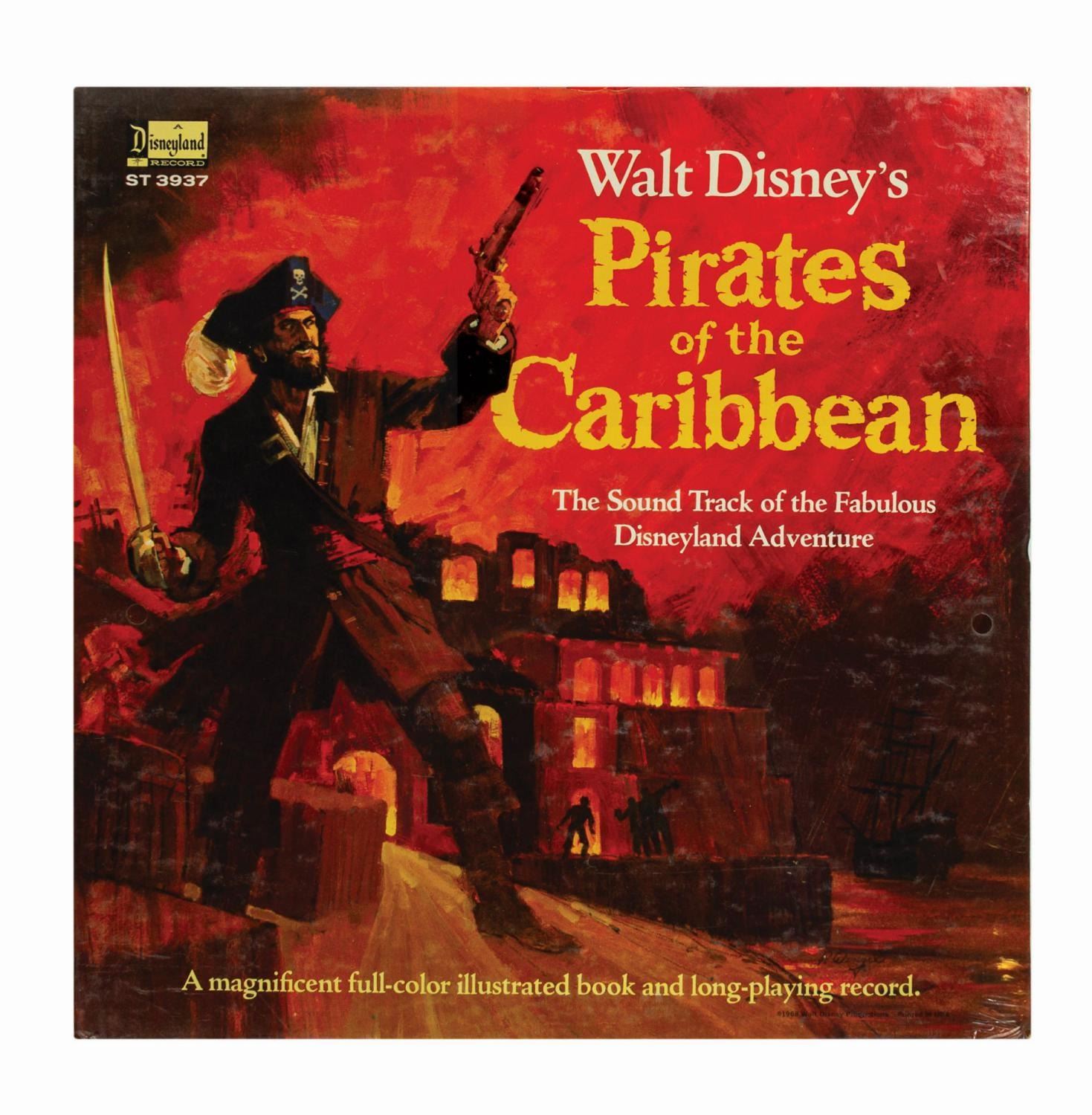 (Disneyland, 1968) A vintage Walt Disney's Pirates of the Caribbean 12" vinyl LP. Featuring the vocal talents of entertainment icon Thurl Ravenscroft, the record is the official soundtrack to the New Orleans Square attraction, released during the first full year it was in operation. The album is still sealed in the original shrink-wrap and retains the Disneyland park price tag sticker on the reverse. Measuring 12.5"x12.5", the record is in fine condition with some minor splitting and soiling to the shrink wrap, the beginnings of ghosting on the back of the sleeve from the record within, and a small bump to the right edge.