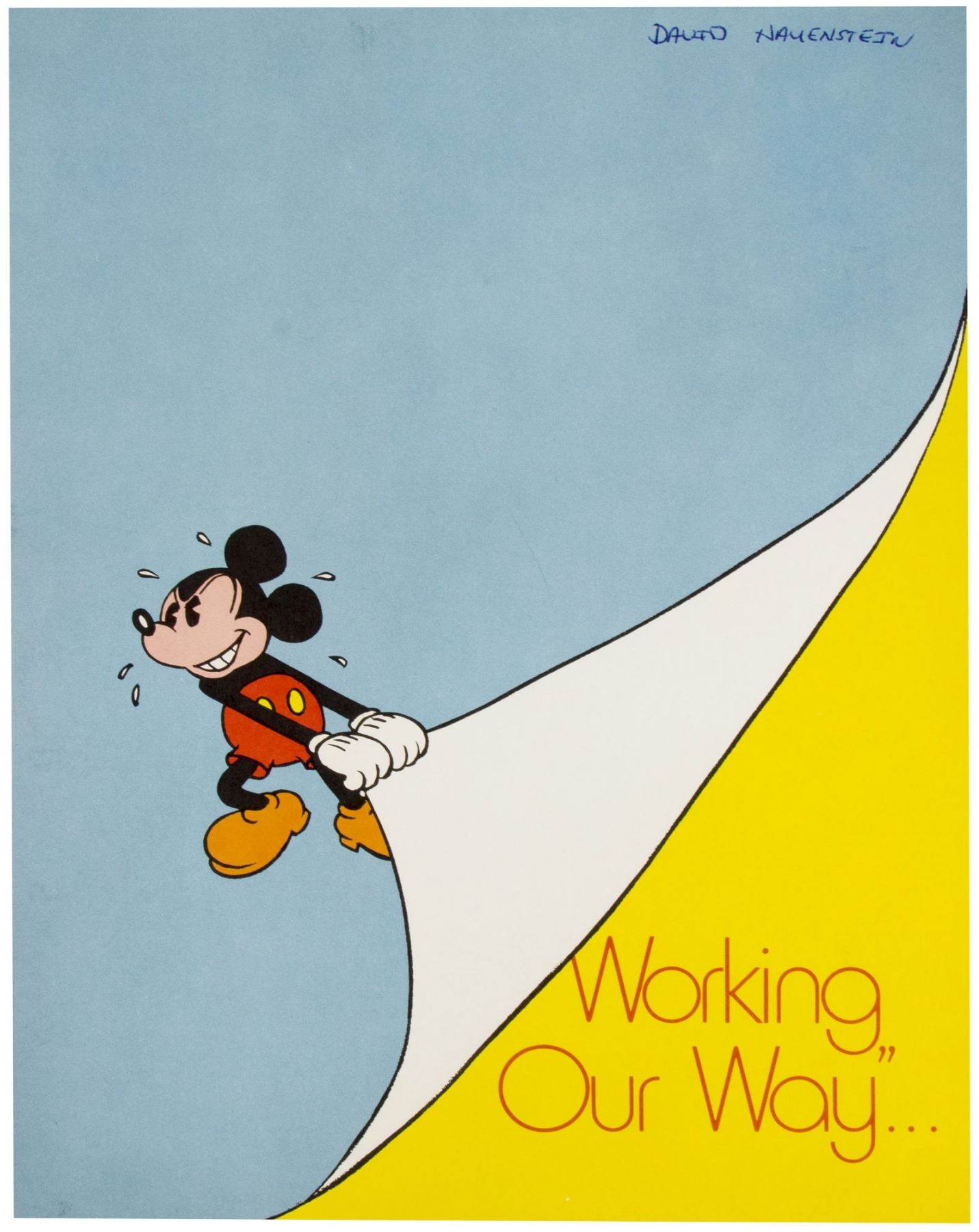 (Disneyland, 1974) A cast member guide titled "Working Our Way" which was published by Disney University to educate new hires on the policies, practices, and procedures of Disneyland. This guide offers an incredible look into the expectations of Disneyland's cast members regarding costumes, on the job injuries, and "The DIsneyland Look". The 14-page guide measures 11"x8.5" and is in very good condition. The original cast member's name is written in the top-right corner of the cover.