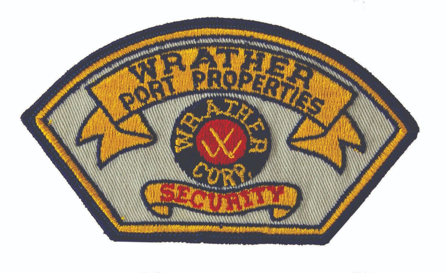 (Wrather, c.1980s) A rare embroidered patch for a Wrather Port Properties security guard uniform. The Wrather Corp., original developers and proprietors of the Disneyland Hotel, leased properties near the Port of Long Beach, where they operated exhibitions of the Queen Mary and the Hughes H-4 Hercules "Spruce Goose" flying boat. Disney acquired the Wrather Corp. in 1988, and developed plans to build the Port Disney resort, incorporating the former Wrather properties. This rare patch is from the unique period during which Disney owned the Wrather Corp. and managed the Queen Mary. Measuring 2.75"x4.75", the patch is in very fine condition with minimal wear.