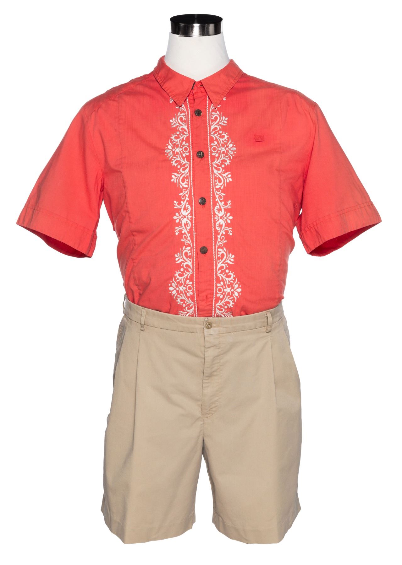 (Disney’s Coronado Springs, 1990s-2000s) A bell services Cast Member shirt and pants from the Walt Disney World Resort. The shirt is labeled a male size XL and a male size 44, the clothing is in good to very good condition with color fading and light wear from Park use.